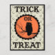 This unique vintage design features the silhouette of an owl against an orange harvest moon, with the words Trick or Treat. Perfect for celebrating the spooky Halloween season!