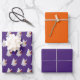 Gift Giving Package Wrapping Paper set of 3 sheets printed with 2 Solid Colours and a Trick Or Treating Ghost With Pumpkin Candy Bucket original animated graphic art design artistic illustration by TheFabricSeal print on demand shop at Zazzle.com #ZazzleMade ©️Original. https://www.zazzle.com/store/thefabricseal