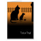 Notre carte d'Halloween est tellement mignonne qu'elle vous fera mal aux dents. Kitty et Kitty Junior ont frappé le porche, secouant les voisins pour des gâteries. Junior fournit le panier tandis que Kitty traîne dans l'arrière - plan (ce que l'on appelle dans le biz de l'astuce ou du traitement comme "le muscle"). Et - ma fourrure ! - Junior habillé en chien ! Nous sommes raisonnablement confiants que Junior porte un masque pour chien et pas, vous savez, une tête de chien réelle (par exemple, ce caniche à côté qui ne se ferme jamais. Encore une fois, juste un exemple). Nous ne sommes pas non plus sûrs de la façon dont notre duo a géré la sonnerie de porte. Qui sait, peut-être qu'ils y attendent depuis le jour de l'Arbour. De toute façon, il vaut mieux faire avec les bonbons à moins que vous ne soyez un fan de têtes de souris croquantes, si vous prenez notre dérive. Personnalisable, afin que vous puissiez ajouter votre propre salutation Halloween à l'intérieur.