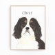 I am in love with this beautifully detailed watercolor illustration of a black, red, and white tricolor cavalier king charles spaniel! Personalize these art prints with your name or monogram to compliment your decor and change fonts by selecting the "edit using design tool" option at personalization.