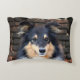 Beautiful tricolor Sheltie, or Shetland Sheepdog, face in a matchingly coloured brick background dog lovers accent pillow
