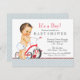 Boy baby shower invitation with adorable little boy and cute red tricycle on a baby blue and red background. This adorable tricycle baby shower invitation is easily customized for your event by simply adding your details in the font style and wording of your choice. You can also change the background colour.