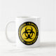 Biohazard - Biopeligro - Biogefährdung - trilingual English-Spanish-German biohazard warning mug in yellow. Humour for the lab or anywhere the office coffee deserves a warning.