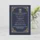 Celebrate this special graduation with this lovely invitation. The navy blue background in embellished with a gold frame and features a gold justice scale. The card is easy to customize with your wording, font, font colour, paper shape options and choice of six paper types.