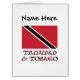 Design big, blank inside, greeting card shows the flag of Trinidad and Tobago. Below, the words TRINIDAD & TOBAGO, in the red, black, and white colours of the flag. Above, a place for a name to personalize for yourself or give as a gift.
