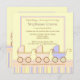 Three times the fun! That's the announcement on this baby shower invitation that features adorable pink and blue baby carriages with pink, blue, yellow, and tan stripes on a yellow background.