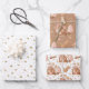 Trio Pink Brown Gingerbread Houses Stars Cinnamon Wrapping Paper Sheets.