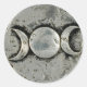 Round sticker with an image of a pewter Triple Goddess symbol.