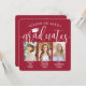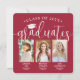 It's a triple graduation party! Announce the achievement of three graduates and invite family and friends to celebrate with stylish joint graduation party square photo invitations. All pictures and wording are simple to personalize, and the colours can be customized using the Zazzle design tool. (IMAGE PLACEMENT TIP: An easy way to position a photo exactly how you want is to crop it before uploading to the Zazzle website.) This template is a combination announcement card on the front with the grad party invitation on the back. The modern red and white design features handwritten style script calligraphy with a mortar board cap, elegant classic typography, and 3 photos of your choice, such as senior pictures or images from the commencement ceremony. This graduation invitation card is a stylish way to announce a special day celebration for any three grads, such as siblings, best friends, cousins, triplets, teammates, brothers and sisters, etc. Congratulations to the graduates!