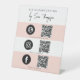 Triple Icon & QR Code Business Social Media Pink Pedestal Sign