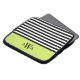 Trendy, chic, girly, black and white striped pattern with lime green colour block border featuring a triple monogram template for you to easily personalize with your first, last and middle name initial letters.