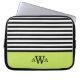 Triple Letter Monogram Green Black White Stripes Laptop Sleeve