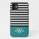 Triple Letter Monogram Teal Black White Stripes Case-Mate iPhone Case
