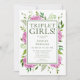 Triplet Girls Pink Hydrangeas Baby Shower Invitation