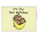 Trois petits singes, deux filles et un garçon, et une grande banane jaune sur les T-shirts Triplets 1er Anniversaire, costumes, sacs fourre-tout, cartes, autocollants, magnets, et bien plus encore.