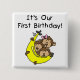 Triplets First Birthday T-shirts, bodysuits, tote bags, buttons, magnets, cards, and more featuring two boys and one girl monkey and a big yellow banana!