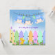 Triplets baby boys hanging on clothesline with picket fence, duck, frog and flowers.