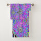Trippy Abstract Aqua, Lime Green and Purple Dahlia Bath Towel Set