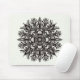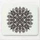 Trippy mousepad with a black and white cool psychedelic mandala digital ink illustration with mushrooms and plants.