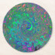Trippy Chartreuse and Blue Retro Liquid Swirl Round Paper Coaster