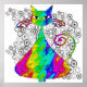 Super groovy trippy cat done in a psychedelic pattern in just about any bright colour you can imagine. This cat is a super groovy retro cat. The background is done in faded retro style circles.