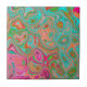 Trippy Retro Orange and Aqua Groovy Abstract Art Tile