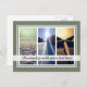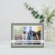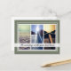 Triptych 3 photo collage template winter Holiday postcards. Upload your own three images to create unique cards for Merry Christmas and other occasions. Add pictures of happy family, grandchildren, kids, friends, reunion, gathering, mom and dad, grandparents, husband and wife, bride and groom, vacation trips, office co workers, wedding etc. Fancy border stripes with beautiful custom background colour passe partout. ie olive green. Includes transparent overlay for stylish script typography text.