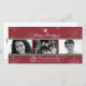 Showcase your family with three photos against a lovely seasonal snowflake background accented by green rules. Your customized holiday message stands out in white against the scarlet red background topped off by a single white snowflake. Available in alternate colours with matching favours and postage