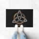 Triquetra (pronounced /traɪˈkwɛtrə/) is a noun derived from the Latin tri- ("three") and quetrus ("cornered"). Its original meaning was simply "triangle". Nowadays, it has come to refer exclusively to this more complicated shape: formed of three vesicae piscis, often with an added circle (as seen here). Much like its predecessor: the triangle, it's used to symbolize the power of things and persons that are threefold.