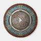 This three-armed spiral pattern called the Triskelion is surrounded by winding knotwork designs in a panelled, repeating pattern.