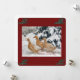 3 canards appelés Daisy, Ducky et Lollie défilent à travers la neige dérive au-delà d'un grand pin lourd de neige. Il neige et vous pouvez voir les flocons de neige descendre tout autour d'eux. La frontière est décorée pour Noël avec des arcs de pin et des baies rouges.