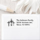 Joli étiquette fait en noir et blanc. Illustration graphique de trois croix noires, réalisée dans un élégant look tourbillonnant en fer forgé. Jolie étiquette d'adresse de retour, bon pour toute utilisation.