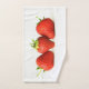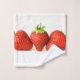 Three Strawberries On White - Étude photographique de trois fraises rouges dans une rangée horizontale photographiée contre un brillant arrière - plan blanc. © Alan Harman Photography 2013. Tous droits réservés. www.alanharmanphotography.com 210518 serviette de bain