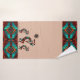 Cet ensemble de serviettes Kokopelli est doté d'un rideau de douche et d'un matelas de bain correspondants.