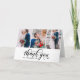Élégante, moderne et fantaisiste carte de collage à trois photos pour remercier vos invités d'avoir été présents lors de votre journée de mariage. Cette carte de remerciement personnalisable présente un superposé de calligraphie moderne noire. Ce design est également disponible sur d'autres cartes et couleurs.