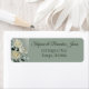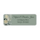 Une belle et simple étiquette d'adresse de retour avec trois roses blanches sur un arrière - plan vert onirique. Customisez avec vos coordonnées.