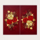 La composition de deux roses rouges artistiquement peintes et d'un rose doré, décoré d'or, feuilles de bijoux sur arrière - plan texturé.