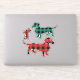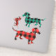 Feuille simple avec trois autocollants Dachshund plaid séparés en rouge et vert.