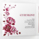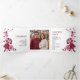 Cérémonie de mariage et programme de fête des fleurs de pivoine de Bourgogne. Inspiré de l'art raffiné de la porcelaine et du design chinois classique, il présente un époustouflant motif floral bordeaux orné de délicats pivoines, symbolisant l'amour et la prospérité. Le mélange harmonieux de teintes bordeaux, roses douces et blanches, évoque à merveille l'élégance subtile des peintures à l'encre anciennes, imprégnant votre journée spéciale d'un air d'amour sophistiqué. Chaque programme se déroule dans un intérieur intimiste, présentant une photo de vous deux - une touche personnelle et chaleureuse que vos invités chériront. Avec vos noms élégamment présentés dans la typographie classique, ce programme n'est pas seulement informatif, c'est un témoignage de votre histoire d'amour unique et de votre goût exquis.