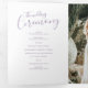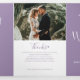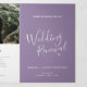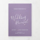 Un texte de script moderne de six pages avec peu de coeurs programme de renouvellement mariage en violet et blanc muet. Modifiez ce programme de mariage avec vos propres noms, dates, introduction, libellé de cérémonie, accompagnateurs de mariage, photo de votre premier événement ou mariage restreint, et vos remerciements. Conception originale par www.mylittleedenweddings.com