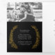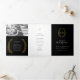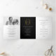Programme de mariage monogrammé à feuille ovale en noir et or dessiné à la main avec vos propres sections histoire d'amour et souvenir. Personnalisez ce programme triplé mariage avec vos propres détails de cérémonie de mariage, noms de fête, photo et histoire d'amour, et dédicaces. Design simple en forme ovale feuille avec votre propre monogramme en or sur noir et blanc. Autres couleurs et articles mariages correspondants disponibles. © Dessin et dessin à la main de la feuille d'origine par Sarah Trett pour www.mylittleedenweddings.com sur Zazzle.