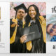 Célébrez les 2 diplômés avec ces invitations modernes pliantes triples pour double remise de diplômes, avec un fond blanc simple, des photos des frères et sœurs, la phrase 'ils y sont arrivés !', et un modèle de fête / annonce facile à personnaliser.