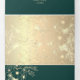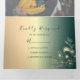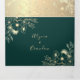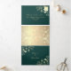 Simple, élégante, moderne, invitation de mariage triptyque 3 en 1 vert émeraude, avec fleurs art déco dorées et photo du couple.