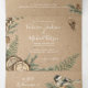 Rustic Watercolor Mariage Woodland tout en un Tri-fold invitations qui viennent avec les cartes de réponse RSVP, Détails et info et une photo du couple. Comprend des branches de pin, pinecones, rondelles, plumes et sur arrière - plan de papier kraft. Parfait pour un mariage extérieur, grange, forêt, campagne ou nature !