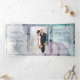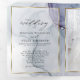 Éclaboussure éthérée d'encre alcoolisée dans des nuances de bleu océan, de sarcelle et de pourpre améthyste riche - chaque section est mise en valeur par un sur-pli transparent blanc avec un encadrement doré, sur le devant se trouve votre photo accentuée d'un double encadrement doré et derrière le sur-pli blanc pour un attrait ésotérique - à l'intérieur de la couverture se trouve une deuxième photo de votre choix - l'invitation de mariage est au centre et la partie détachable de réponse au RSVP est sur la dernière section. Cette invitation est conçue pour être expédiée telle quelle, pliée sans enveloppe - Ce magnifique design abstrait moderne est parfait pour une invitation de mariage tout-en-un comprenant une réponse RSVP avec choix de repas pré-adressée et détachable pour que vos invités puissent facilement la renvoyer - une invitation de mariage tout