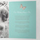 Programme de renouvellement de six pages pour les mariages ou de cérémonie de mariage. Modifiez ce programme de mariage avec vos propres noms, dates, introduction, libellé de la cérémonie, accompagnateurs de mariage, photo de votre premier événement ou mariage restreint, ou une photo de votre fiançailles, et ajoutez vos propres mots de remerciement au dos. Des papillons turquoises, bruns et crème ainsi que d'autres produits de mariage couleur et des options de couleur sont disponibles. Art original et design de Sarah Trett pour www.mylittleedenweddings.com sur Zazzle.