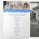 Programme funéraire ordre de service gatefold floral forget-me-not flowers programme funéraire d'art en blanc, bleu, avec des touches de jaune et vert sur le papier blanc. Il vous suffit de remplacer l'exemple de texte et les supports photo par vos propres photos et informations spéciales. Dessin original encré et aquarelle d'illustration et design par Sarah Trett pour www.mylittleeden.com (les photos ne sont que des images d'espace réservé à remplacer par les vôtres).