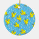 A jumble of white music notes and a cute yellow chick holding a trombone against a blue background is a unique music design for low brass musicians, music teachers and school students in concert, jazz and marching band.