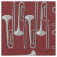 Trombones in a crosshatch pattern is a unique musical instrument design for low brass musicians, music teachers and school students in concert , jazz and marching band.