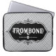Trombone in decorative text against a white or black emblem is a unique gift design for low brass musicians, music teachers and students in concert, jazz and marching band.